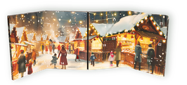 Der Kalender ist nicht nur ein Augenschmaus, sondern auch ein Erlebnis: vierfach aufklappbar, mit einem stimmungsvollen Innenbild einer Weihnachtsmarkt-Szenerie, das die Türchen kunstvoll integriert. Er wird zum dekorativen Highlight in der Adventszeit – und zu einem täglichen Ritual voller Freude.