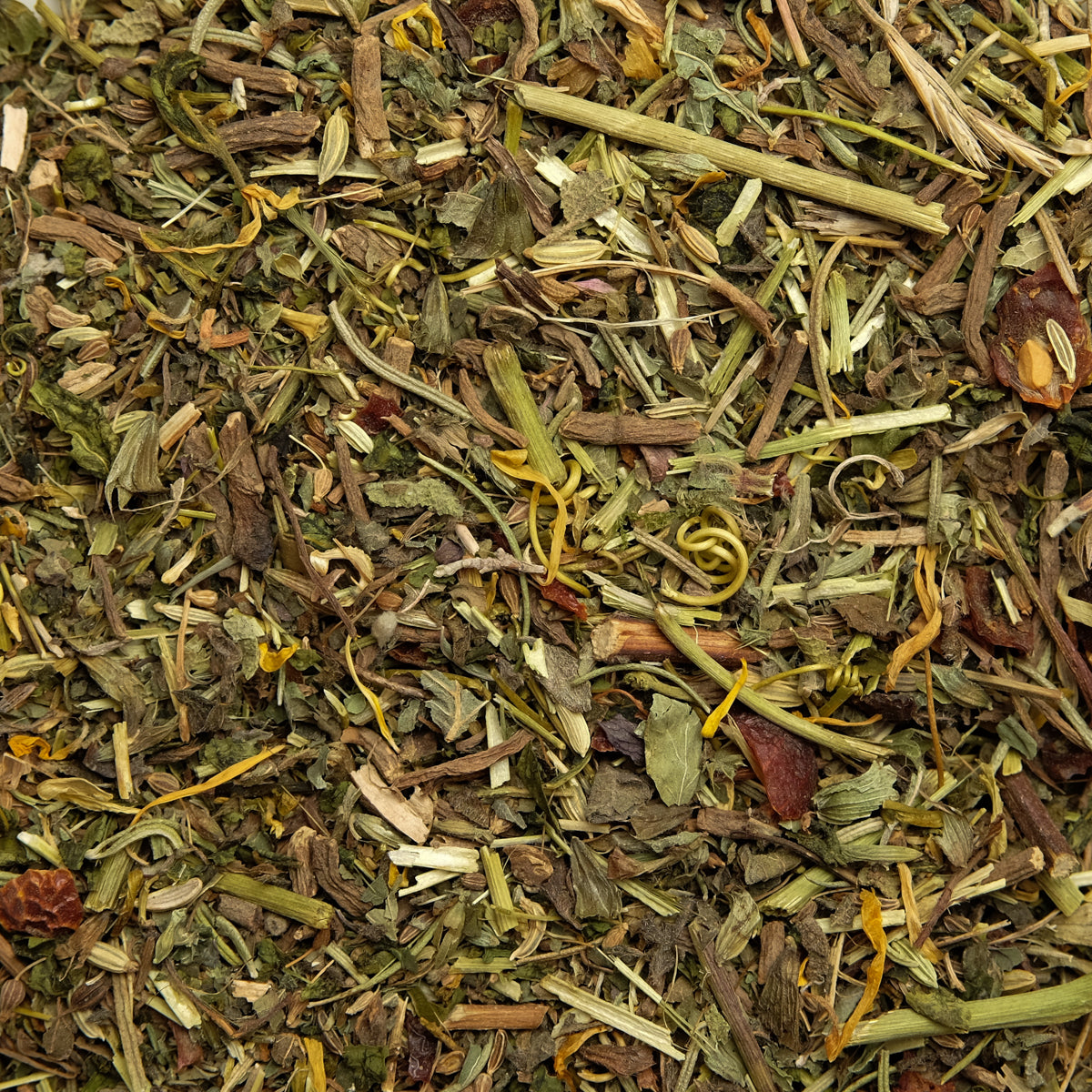 Zutaten: Baldrianwurzel, Passionsblumenkraut, Melissen- und Pfefferminz-Blätter, Fenchel, Kümmel und Anis, Hagebuttenschalen, Rosmarinblätter, Ringelblumenblüten.